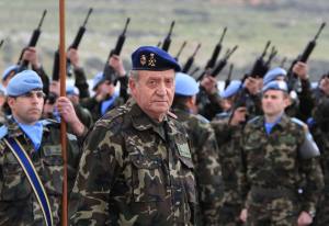 I. János Károly spanyol király tiszteleg spanyol ENSZ békefentartók díszsorfala előtt Libaonban, 2010. február 10-én.