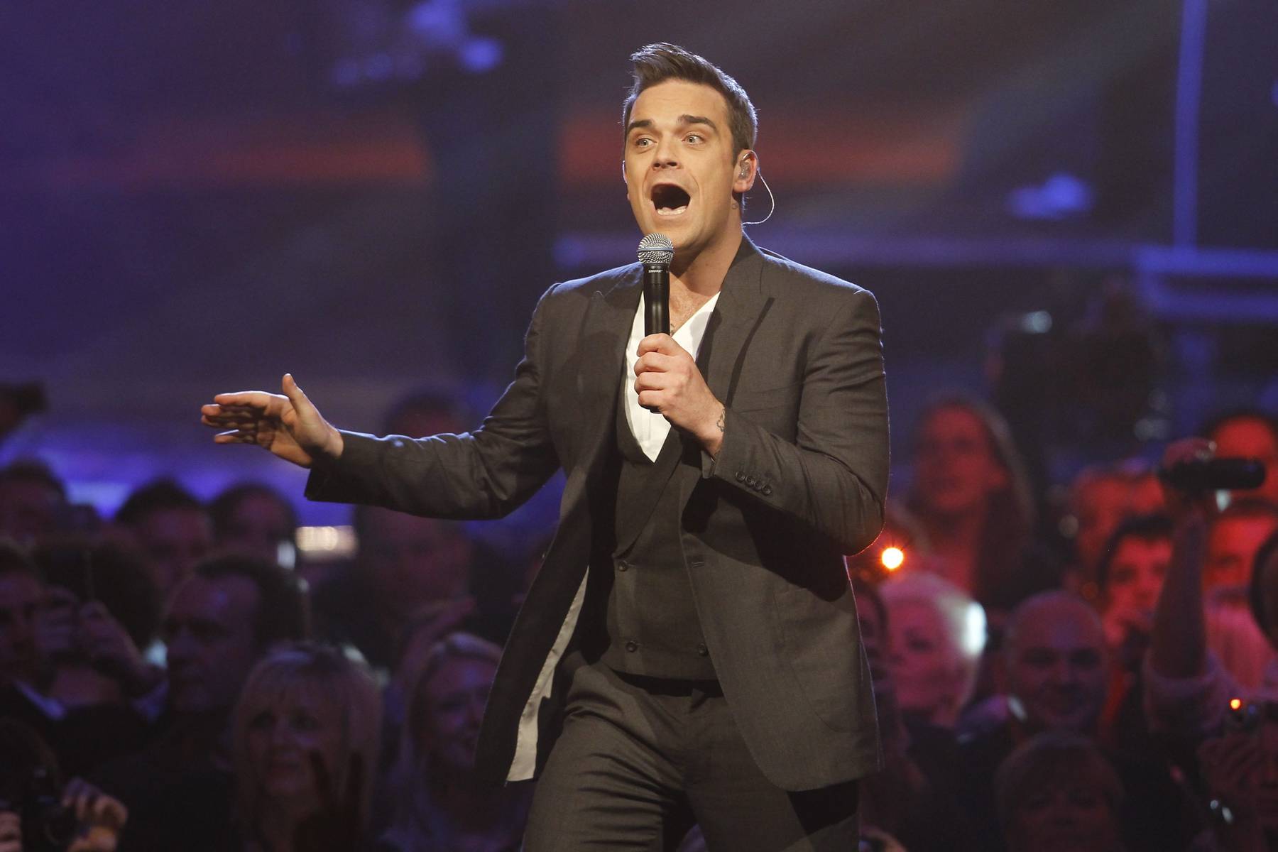 Robbie Williams az Echo Zenei Díjak gáláján énekel, Berlinben 2010. március 4-én