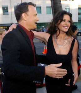 Tom Hanks és Catherine Zeta-Jones Oscar-díjas színészek a Terminál című Steven Spielberg rendezte filmjük bemutatóján, Los Angelesben 2004 nyarán