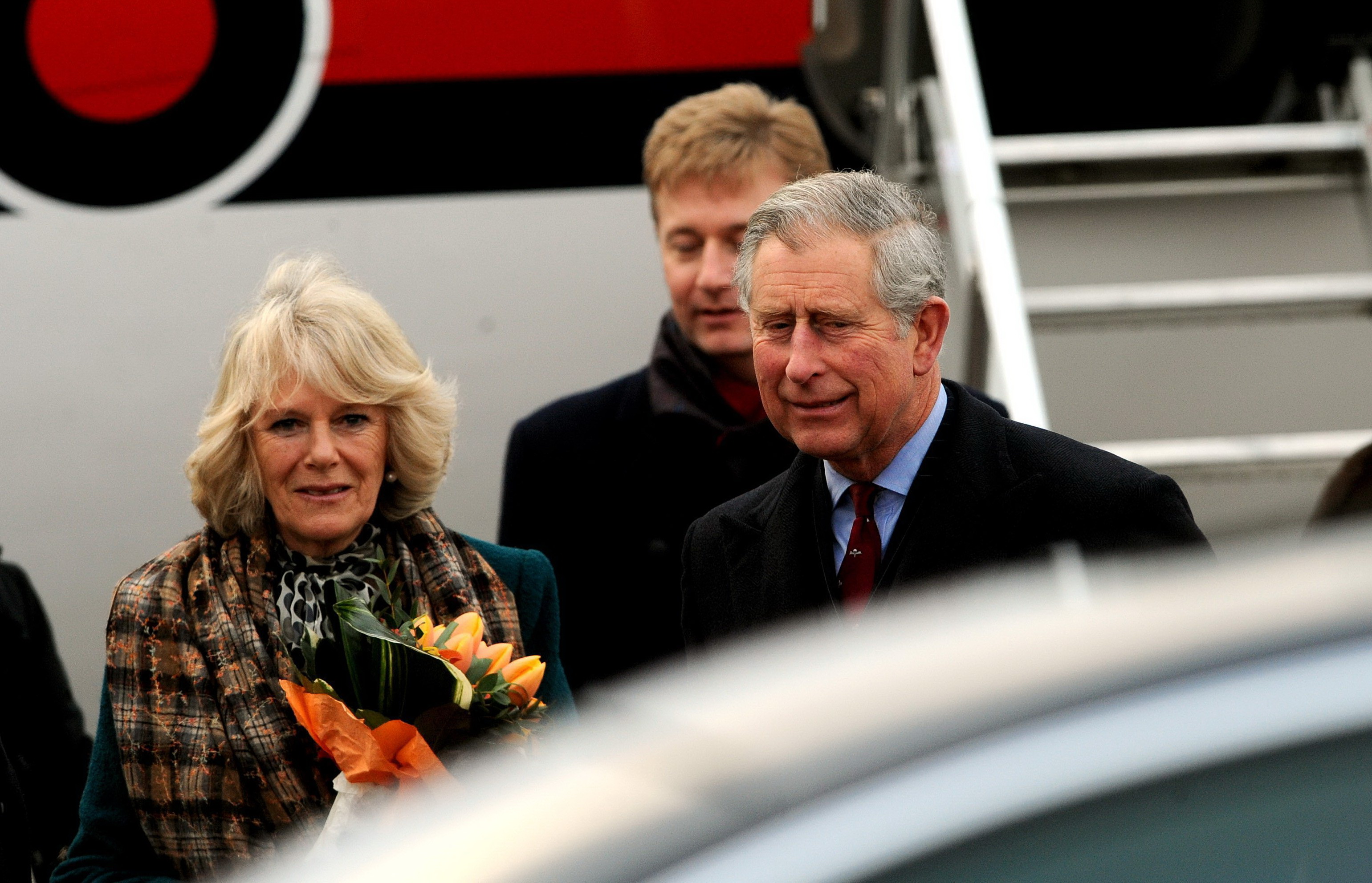 Károly walesi herceg, brit trónörökös és felesége, Camilla cornwalli hercegnő a Ferihegyi repülőtéren 2010. március 17-én