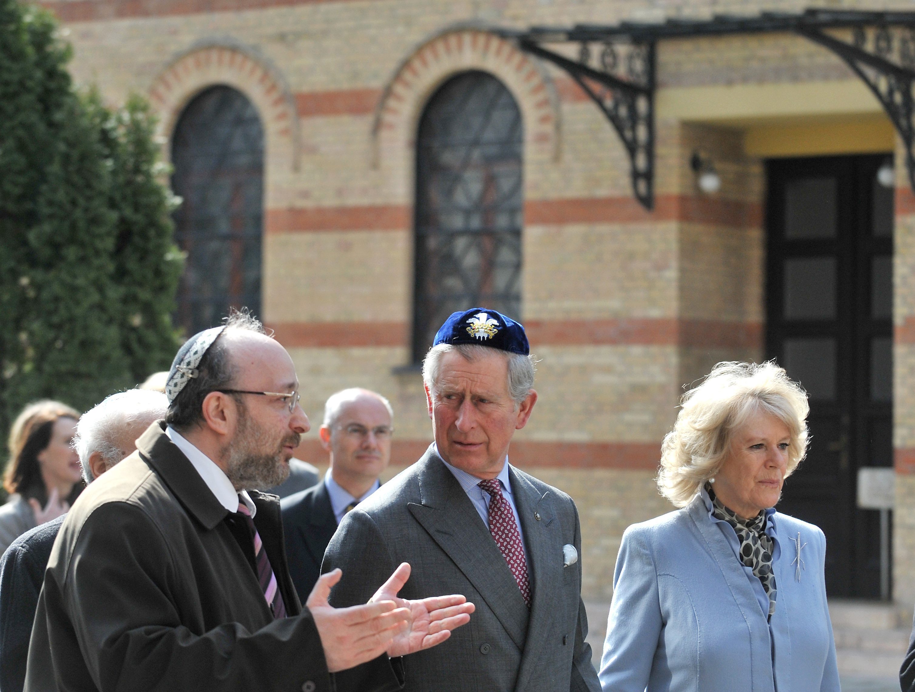 Károly walesi herceg, brit trónökös és neje, Camilla cornwalli hercegnő a Dohány utcai Zsinagóga kertjében 2010. március 18-án
