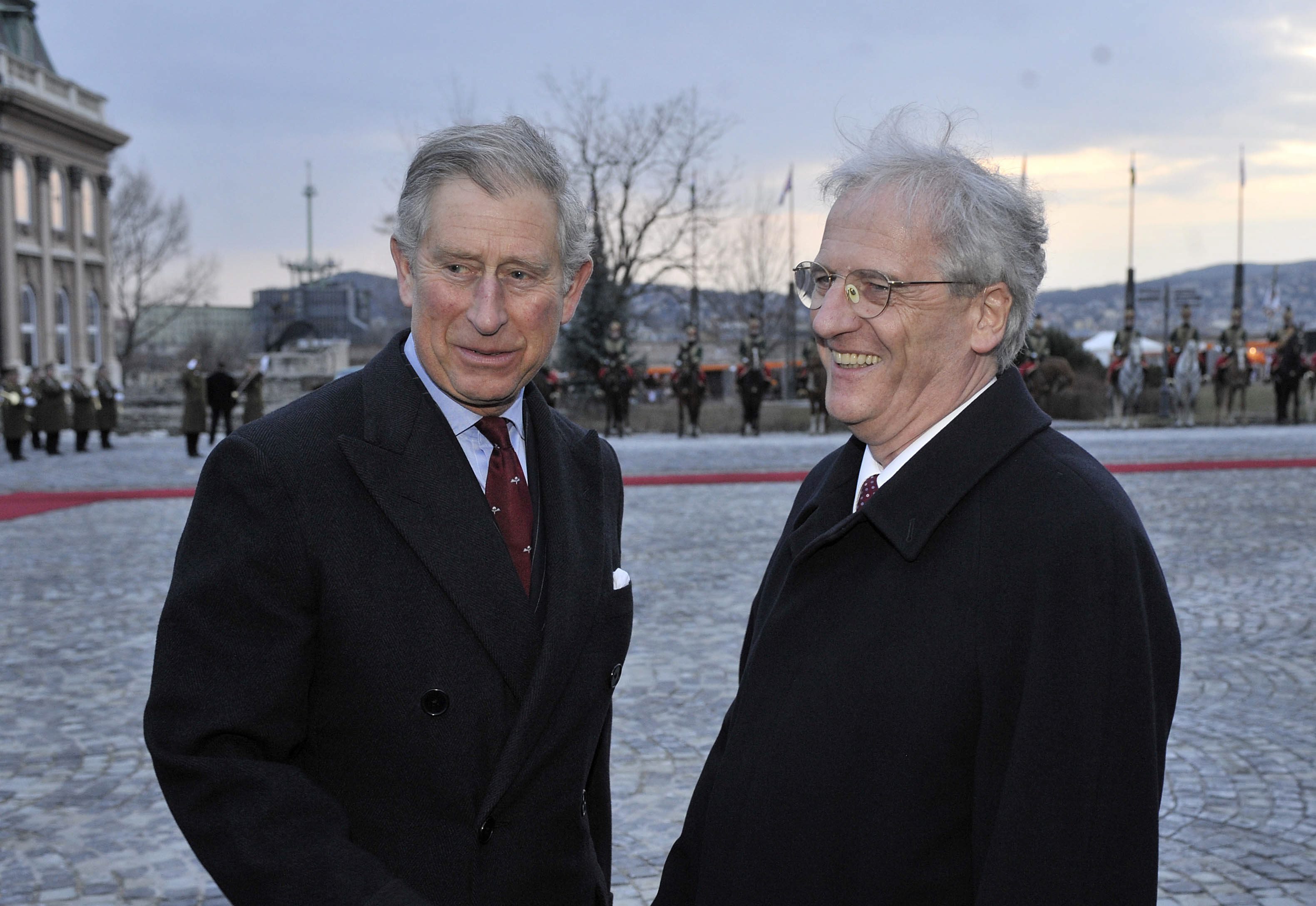 Károly walesi herceg, brit trónörökös és Sólyom László magyar köztársasági elnök a Sándor-palota előtt 2010. március 17-én