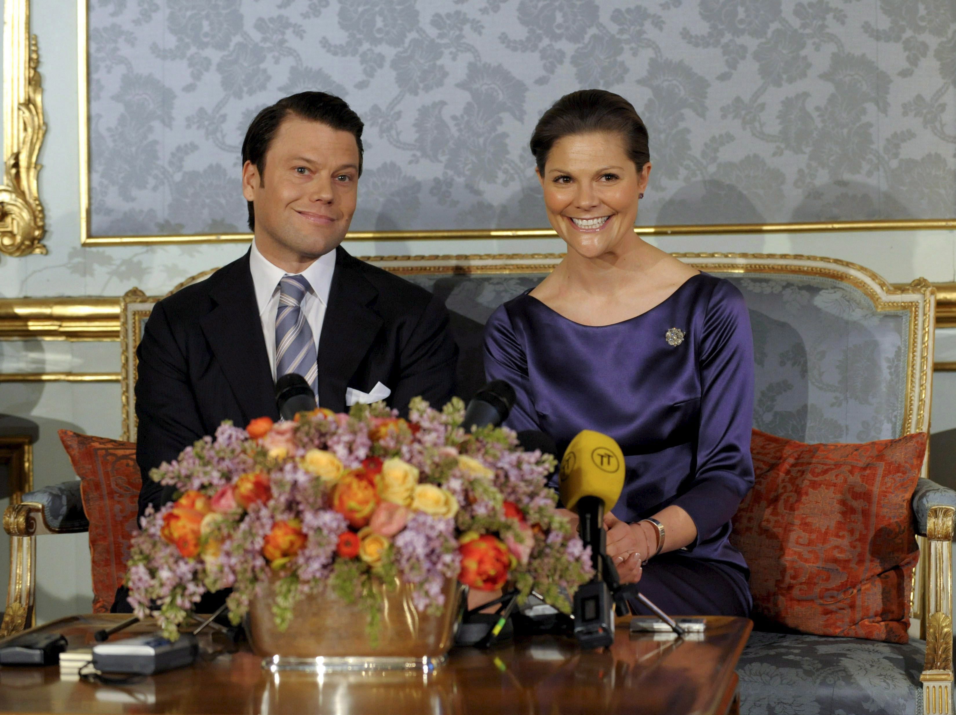 Viktória svéd trónörökösnő és vőlegénye, Daniel Westling bejelentik eljegyzésüketa stockholmi királyi palotában 2009. február 24-én