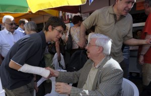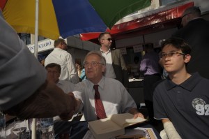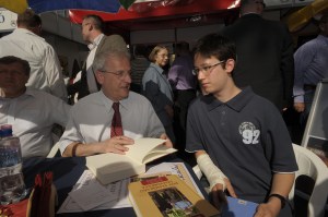 Flesch István Törökországgal foglalkozó harmadik könyvének dedikálásakor kezet fog Velem a 81. Ünnepi Könyvhéten, a Vörösmarty téren 2010. június 6-án