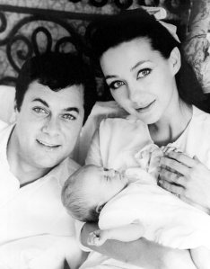 Tony Curtis magyar származású amerikai színész és felesége, Christine Kaufmann és gyermekük, Alexandra 1964-ben