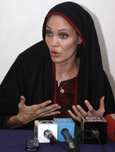 Ez a 35 éves színésznő negyedik útja Pakisztánba, egy héttel ezelőtt pedig videóüzenetben szólította fel az embereket, hogy adakozzanak Pakisztán javára, ő például 100 ezer dollárt utalt át az árvíz károsultjainak.