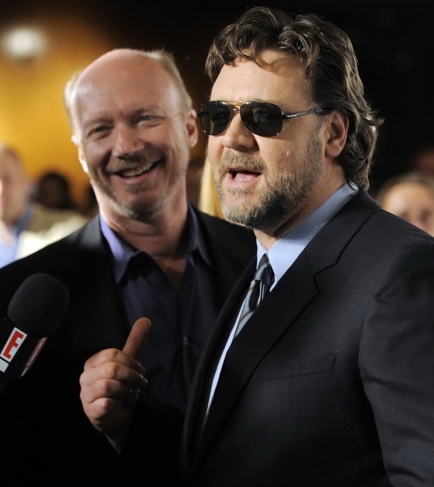 Paul Haggis amerikai rendező és Russell Crowe ausztrál színész Liam Neeson ír színész és Russel Crowe ausztrál színész A következő három nap (The Next Three Days) című filmjük bemutatóján Los Angelesben 2010. november 16-án