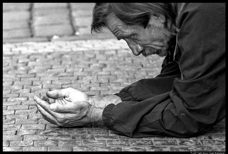 A minap a 7. kerületben sétálva leszólított az utcán egy középkorú cigány férfi, aki 50 forintot szeretett volna kérni tőlem. Természetesen most sem volt nálam pénz, tehát ha akartam volna sem tudtam volna adni neki. Ennek ellenére beszélgetésbe elegyedtünk és elmesélte, hogy Romániában él, de néhány héttel ezelőtt vendégmunkásként felhozták dolgozni egy építkezésre, azonban idő előtt kirúgták és most enni sincs pénze. Azt mondta, hogy ez az ötven forint is kenyérre kellene neki, s mutatta is a kezét, amiben másik 150 forintot szorongatott. Azt mondta, hogy már több mint egy napja alig evett valamit.