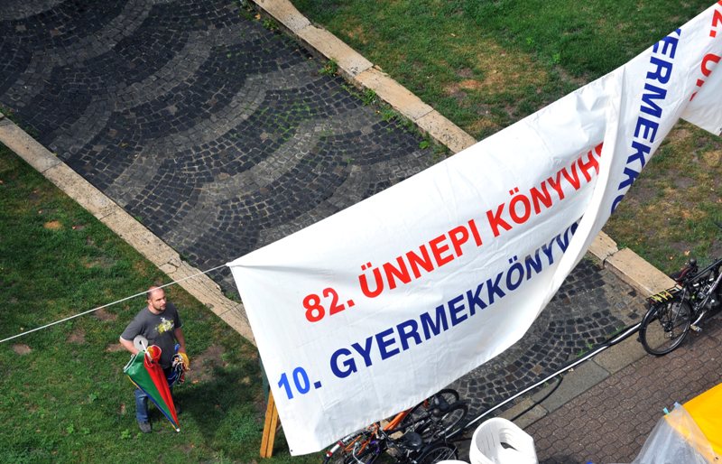 2011. június 2.2011. június 2-án a budapesti Vörösmarty téren nyílt meg a 82. Ünnepi Könyvhét, az eseményen én is jelen voltam. Sajnos a rossz idő teljesen elmosta az egész rendezvényt; a megnyitóra is szakadó esőben került sor, de még így is érdekes volt Tóth Krisztina József Attila-díjas költő, író beszéde és látni a Tűzoltózenekart esőkabátba zenélni.