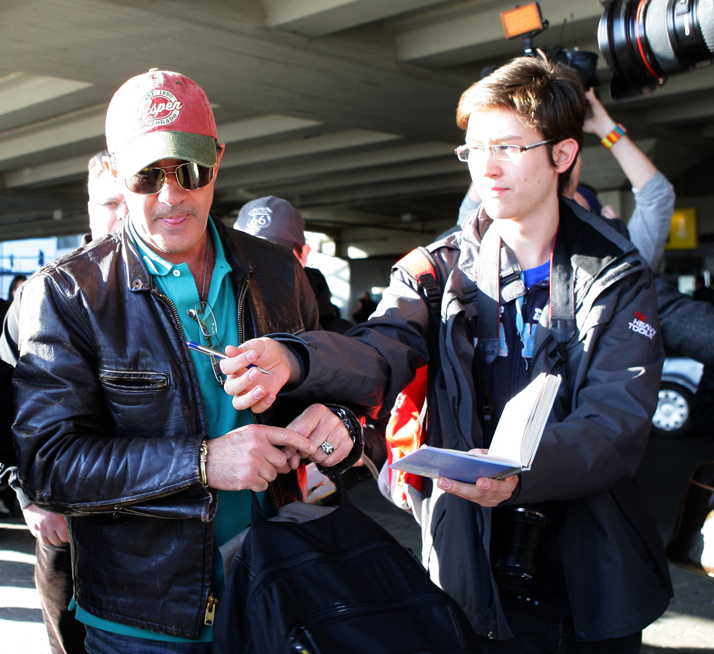 Antonio Banderas spanyol színész aláírást ad nekem a Budapest Liszt Ferenc Nemzetközi Repülőtéren 2012. március 4-én (Fotó: Blikk/Korponai Tamás)