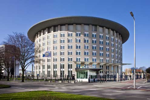 Az Organisation for the Prohibition of Chemical Weapons (Vegyifegyver-tilalmi Szervezet, OPCW) 1997-ben alakult, székhelye Hágában van. Jelenleg 189 ország a tagja, legutóbb Szomália csatlakozott hozzá idén júliusban. A jelenleg polgárháború dúlt Szíria jövőhét hétfőn lesz tagja a világszervezetnek, miután felszólították Basár el-Aszad rezsimjét, hogy váljon meg tömegpusztító fegyvereitől. Az OPCW munkatársai jelenleg éppen Szíriában dolgoznak, a vegyi fegyverek nemzetközi ellenőrzés alá helyezéséről és megsemmisítéséről kidolgozott amerikai-orosz menetrend értelmében szakértőik a hónap végéig elkészítik jelentésüket a szíriai ideggázokról, amelyeket hamarosan meg is semmisítenek.