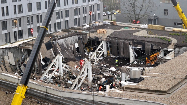 Teljesen beomlott a Maxima bevásárlóközpont teteje Rigában 2013. november 23-án délutánra, két nappal azt követően, hogy a tető jelentős része leszakadt. A szerencsétlenség legkevesebb ötvennégy halálos áldozatot követelt, de a mentés még mindig zajlik.