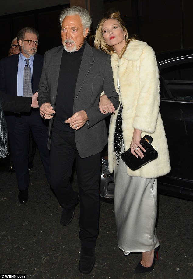 A kifutón huszonöt éve töretlen sikereket elérő Kate Moss a Playboy-ünnepségre a Brit Divat Díjak átadási ceremóniájáról érkezett, ezüst estélyit és egy fehér bundát viselve. A 39 éves Kate Moss régi barátjával, Sir Tom Jones walesi énekessel érkezett a Playboy-gálára. Érdekesség, hogy a legendás énekes készíthetett interjút Kate Mossal a Playboy hatvanadik születésnapja alkalmából megjelenő 2014 január-februári lapszám részére, amelynek címlapján Moss látható. A szupermodell karrierje során ez az első címlapja az erotikus magazinban.