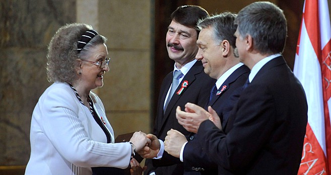 Áder János, Magyarország köztársasági elnöke a miniszterelnök előterjesztésére kiosztotta az állami kitüntetéseket az 1848-49-es forradalom és szabadságharc évfordulója alkalmából a Parlament kupolacsarnokában 2014. március 14-én. Jókai Anna írónő kapta a Kossuth Nagydíjat.