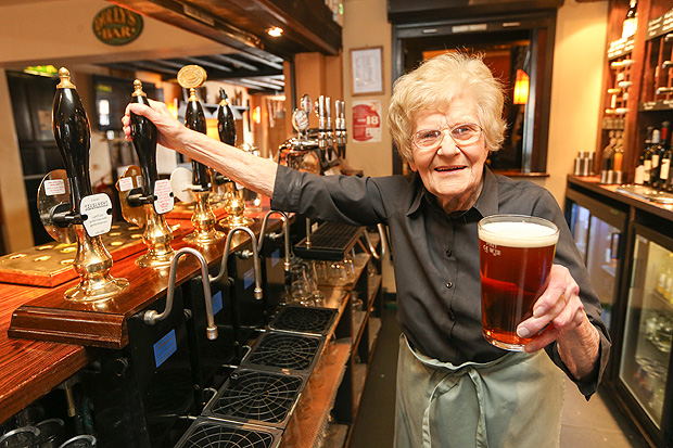 Az 1914-es születésű Dolly Saville 26 évesen kezdett el pincérnőként dolgozni 1940-ben, és becslései szerint azóta legalább 2 millió pint, vagyis 946 ezer liter sört szolgált fel. Ez idő alatt kiszolgálta már az egykori James Bondot, Pierce Brosnan ír színészt, Vera Lynn brit énekesnőt, Elizabeth Taylor Oscar-díjas brit-amerikai színésznőt, valamint Ted Heath brit miniszterelnököt is. A már ükunokával is büszkélkedhető idős asszony 94 éves koráig napi 6 órát dolgozott, és csak két hét betegszabadságot vett ki.