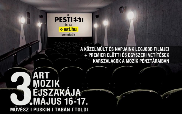 2014. május 16-án egész éjjel várják látogatóikat a népszerű fővárosi art-mozik, a Művész, a Puskin, a Toldi mozi és a Tabán Kinotéka. A művész mozik éjszakáját harmadik éve rendezik meg.