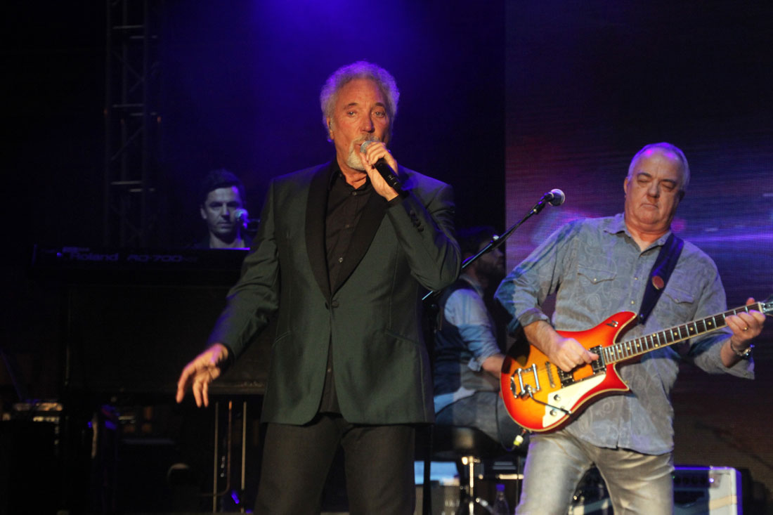 A koncert előtt az állig felhúzott kék esőkabátot viselő Borkai Zsolt polgármester köszöntötte a résztvevőket, majd előbb a zenekar tagjai, aztán Tom Jones érkezett a színpadra, akit hatalmas ováció kísért. A barátságtalan idő ellenére Tom Jones talán még a megszokottnál is felszabadultabb volt, látszott rajta, hogy élvezi, amit csinál. S azt, amit csinál, maximális profizmussal és alázattal teszi. Fiatal előadókat megszégyenítő energiával másfél órán keresztül szórakoztatta a közönséget, csibészes személyiségéből fakadóan egyfajta showman, ha énekel pedig, láb nem marad egy helyben. Habár életkora miatt már nem koncertelem a híres csípőmozgás, azért Tom Jones lábában még benne van a boogie. A mostani koncerten a jól ismert régi nagy slágerek kicsit háttérbe szorultak, néhányat áthangszerelt formában tálalva kaptunk, de a hangsúly a legutolsó két album, a rendkívül sikeres 2010-es Praise & Blame és a két évvel későbbi Spirit in the Room dalain volt, és szerencsére kaphattunk egy kis ízelítőt az idei új albumból is, amely éppen olyan, amilyet várunk: erőteljes, kicsit rock, blues, gospel, soul és rhythm and blues, de leginkább őszinte. Az pedig, mi más lenne, mint az egyöntetű siker jele, hogy egy hetvenes éveit taposó énekes koncertjéért ronggyá ázik több ezer ember, végig éneklik, táncolják a fellépést, révült extázisban hallgatják a megismételhetetlen csodát, majd feltöltődve elandalognak az éjszakába?