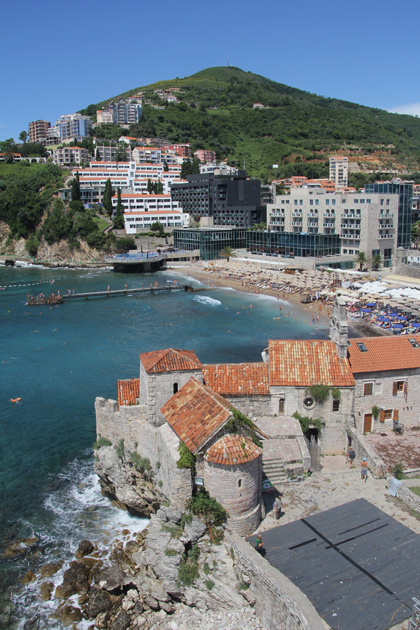 Budva sok mindenről híres. Például arról, hogy 2013-ban itt tartották az ország első meleg felvonulását, amelyet agresszív szélsőségesek megzavarása miatt kevésbé nevezhetünk eredményesnek, illetve arról, hogy ez a város az adriai tengerpart települései közül a legrégibb. Ahhoz azonban kétség nem fér, hogy nem véletlenül érdemelte ki a montenegrói turizmus metropolisza nevet. Kilométeres sor vezet be a tengerparti üdülőhelyre, ahol a tizenegyezer fős lakosságra kb. két turista jut. Ha olyan tömeg azért mégsincs, mint a Copacabanán, jó és rossz időben egyaránt sokan fordulnak meg itt. Huszonegy kilométeren keresztül tucatnyi strand lelhető fel, azonban ezek többsége kavicsos, viszont ez nem akadály, mivel rendkívül kiépített tengerpartról beszélünk, ahol jól felszerelt pihenőövezetek találhatóak. Nekünk sikerült egy olyan majdhogynem luxuszónának beillő részt találni, ahol bőrhuzatos napágyak, napernyők, baldachinos ágyak és mindig segítőkész alkalmazottak várják a pihenni vágyót. Egyedül a bárpult mellett elhelyezett két óriási hangfal dübörgése zavarta meg néha a kikapcsolódást, de elvégre a fiatal társaság zöme velem ellentétben nem egy könyvbe elmélyedve élvezte a nyarat. Persze, az ember a csobbanást sem hagyhatja ki: a tengervíz nyáron 25 Celsius-fok közötti és nem olyan hirtelen süllyed.