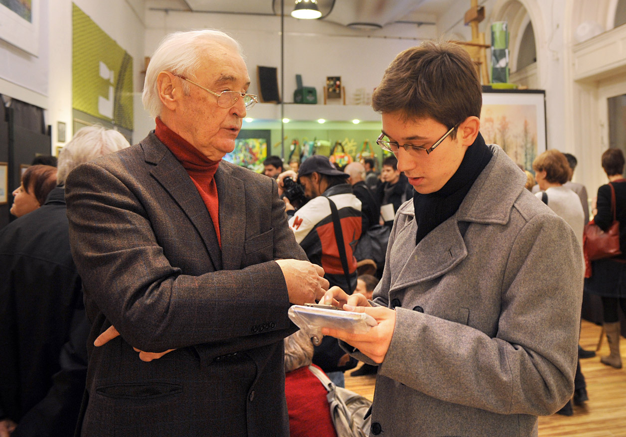 Czeizel Endre világhírű orvos-genetikussal Gross Arnold Kossuth-díjas grafikusművész kiállításának megnyitóján a budapesti Medence Szalonban 2012. november 28-án