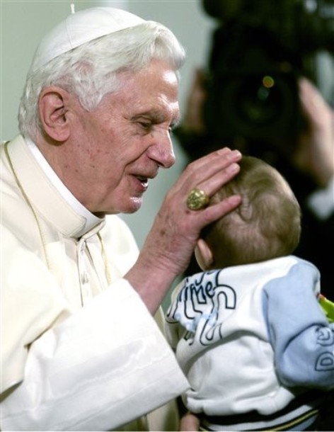 A pápa beiktatásán az emelvényig csak egyetlen alkalommal szállt le a pápamobilról, akkor testi fogyatékossággal élők egy csoportjához ment, és megáldotta az egyik tolókocsis beteget. A testőrei közül néhányan feladtak nekik csecsemőket, kisgyermekeket, akiket homlokon csókolt, és megáldott, majd visszaadta őket testőreinek, akik visszaszolgáltatták a gyermekeket a szüleiknek. A beiktatási mise kezdetén az új pápa megválasztását először bejelentő Jean-Louis Tauran protodiakónus bíboros az egyházfő vállára helyezte a palliumot, a pápai hatalmat jelképező gyapjúszalagot, Angelo Sodano olasz bíboros, a bíborosi kollégium dékánja pedig ujjára húzta a halászgyűrűt, a pápa hivatali- és jegygyűrűt.